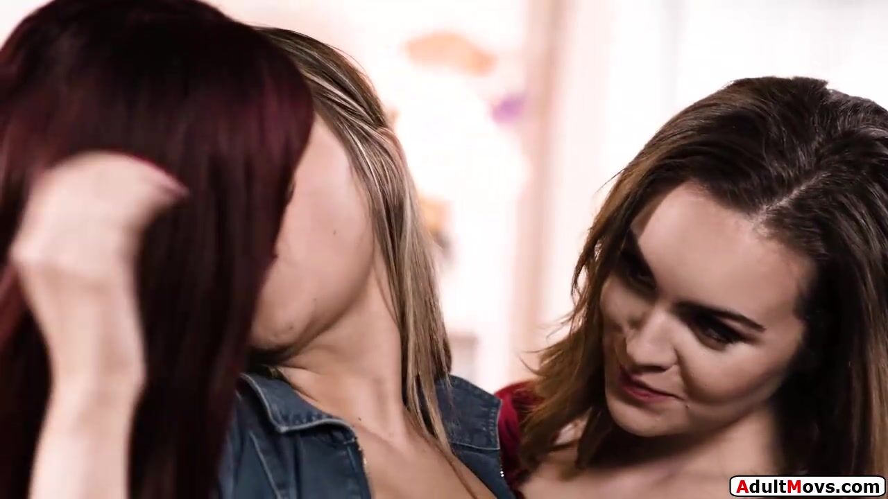 Busty milf and lesbian colleague secuce the hot makeup artist.Both kiss her and the redhead cougar is licked while making out.The small tits babe gives oral to both and is facesitted while getting snatch eaten out by the brunette