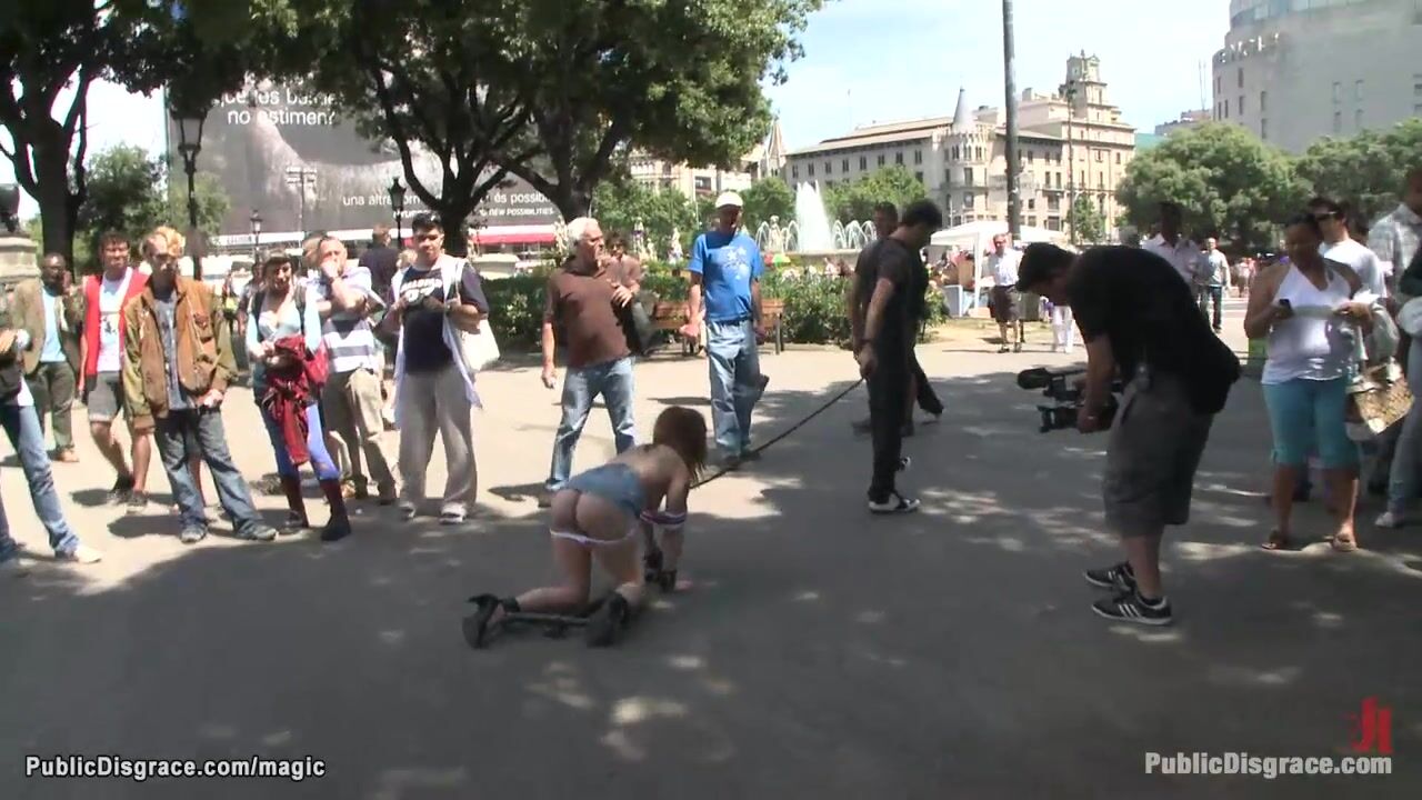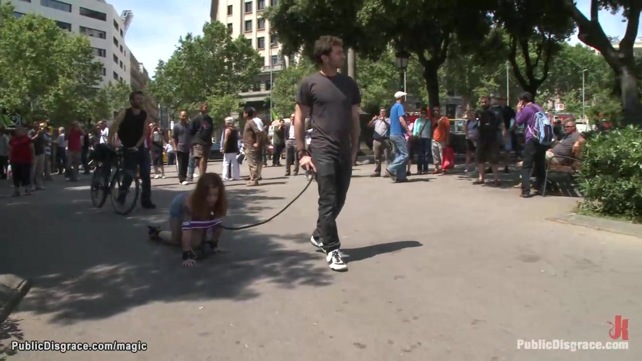 Bound slave walked like a dog in public Video