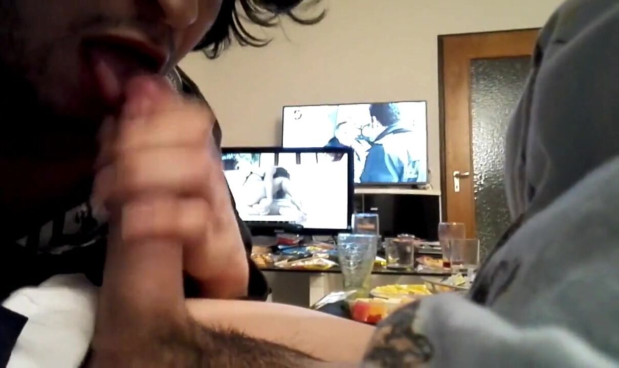 Twinks friend blowjob before sleeping with cumshot drinking Video