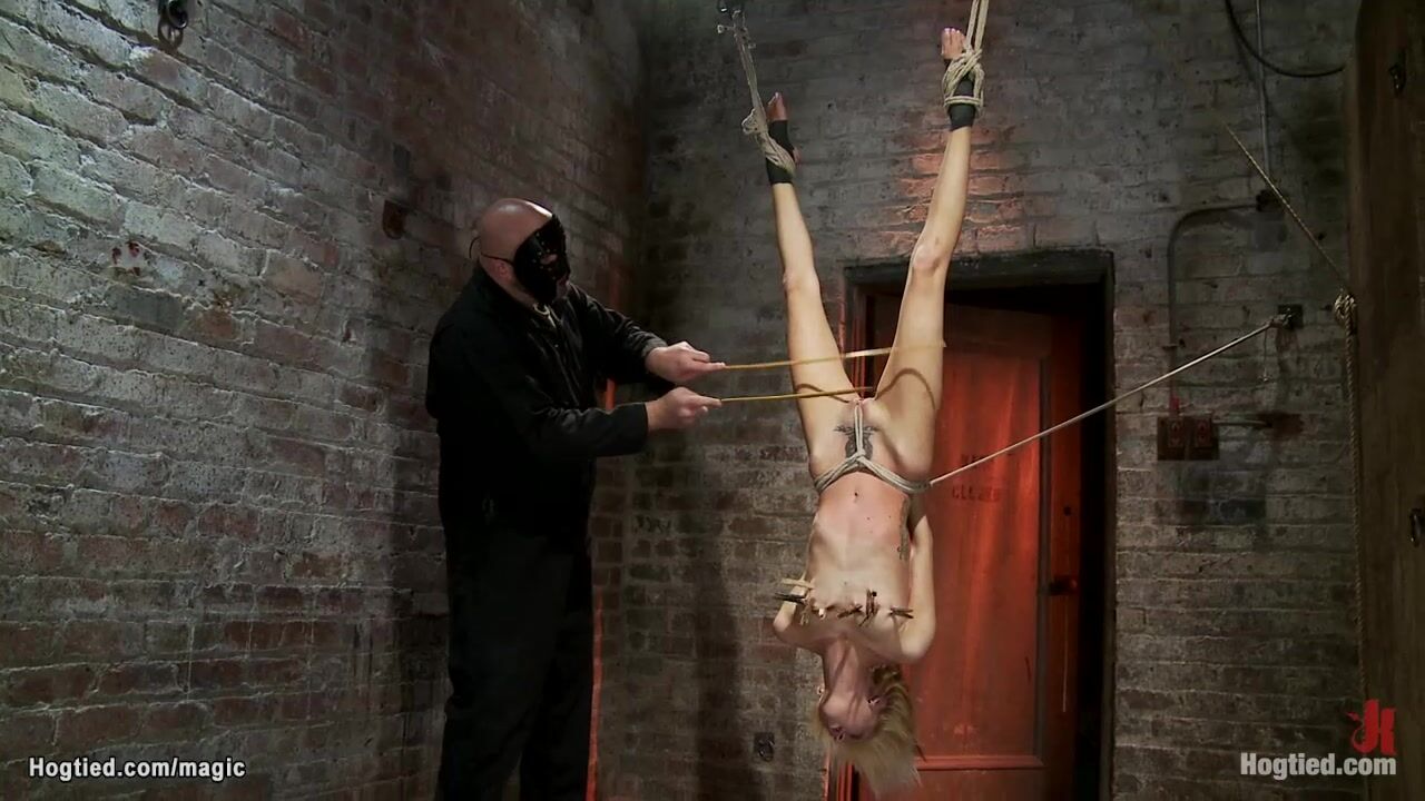 Slim blonde in upside down suspension Video