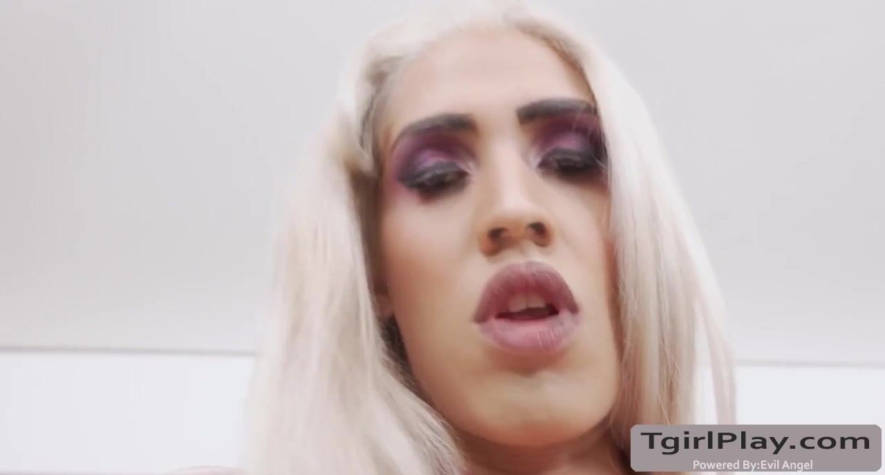 Ts latina stunner Mariah shakes her big ass and baress her huge tits for the camera slowly striptease her fishnet lingerie. The transexual babe whips out her tranny cock and strokes it in a nasty solo masturbation show with her legs up and ass stretched.