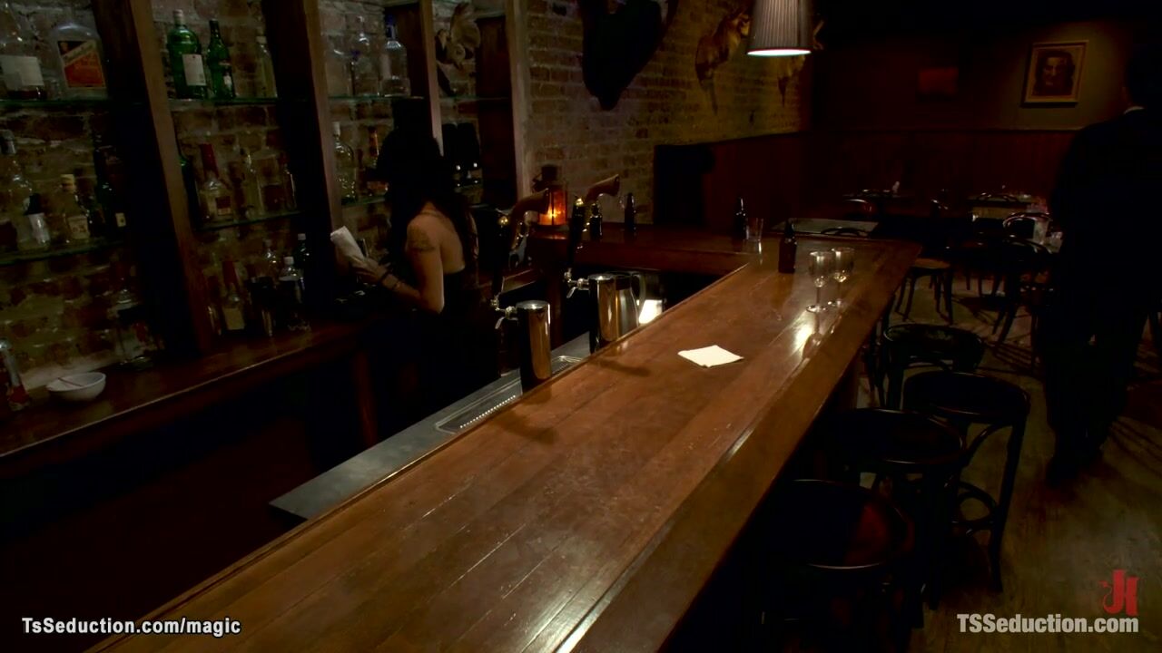 Description: Big tits brunette Latina shemale bartender hottie TS Foxxy seduces banker Chris Archer in her bar and fucks him in mouth and hairy ass after working time