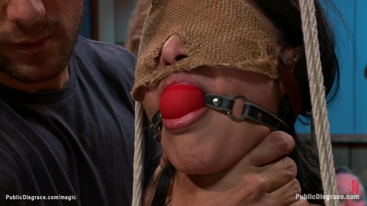 Description: Young busty brunette babe Jayden Lee first time bound in public by dom Princess Donna Dolore then anall fucked by big dick Ramon Nomar in front of strangers