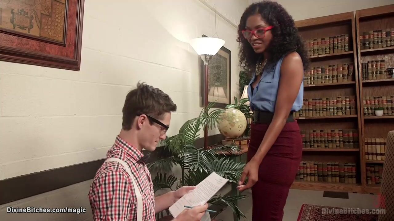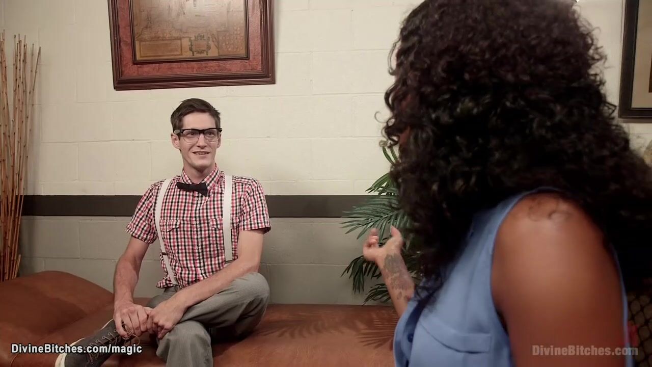 Description: Sexy curly ebony shemale shrink Lotus Lane otk spanks patient Tony Orlando then in dungeon cuckolds and fucks him in threesome with her white bf Rob Yaeger