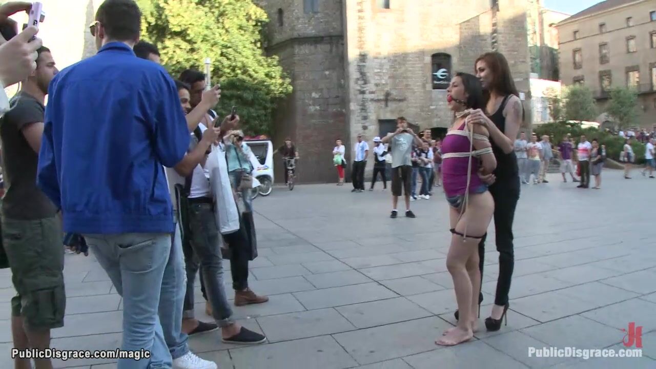 Description: Gagged and bound Euro slave Samia Duarte is humiliated in public streets by dom Princess Donna Dolore and master James Deen then fucked too and gang banged by strangers in local porn shop