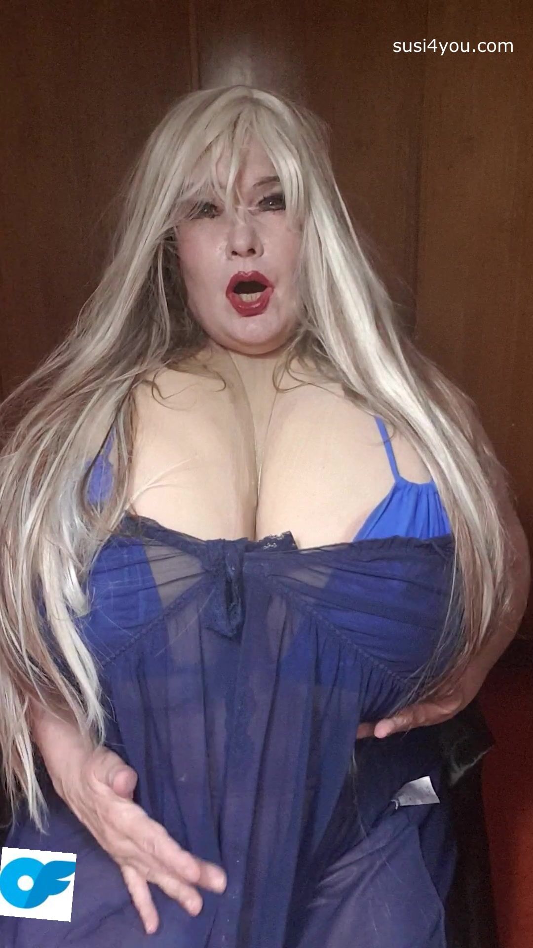 Susi is teasing in blu lingerie showing cup k tits and bouncing them Video