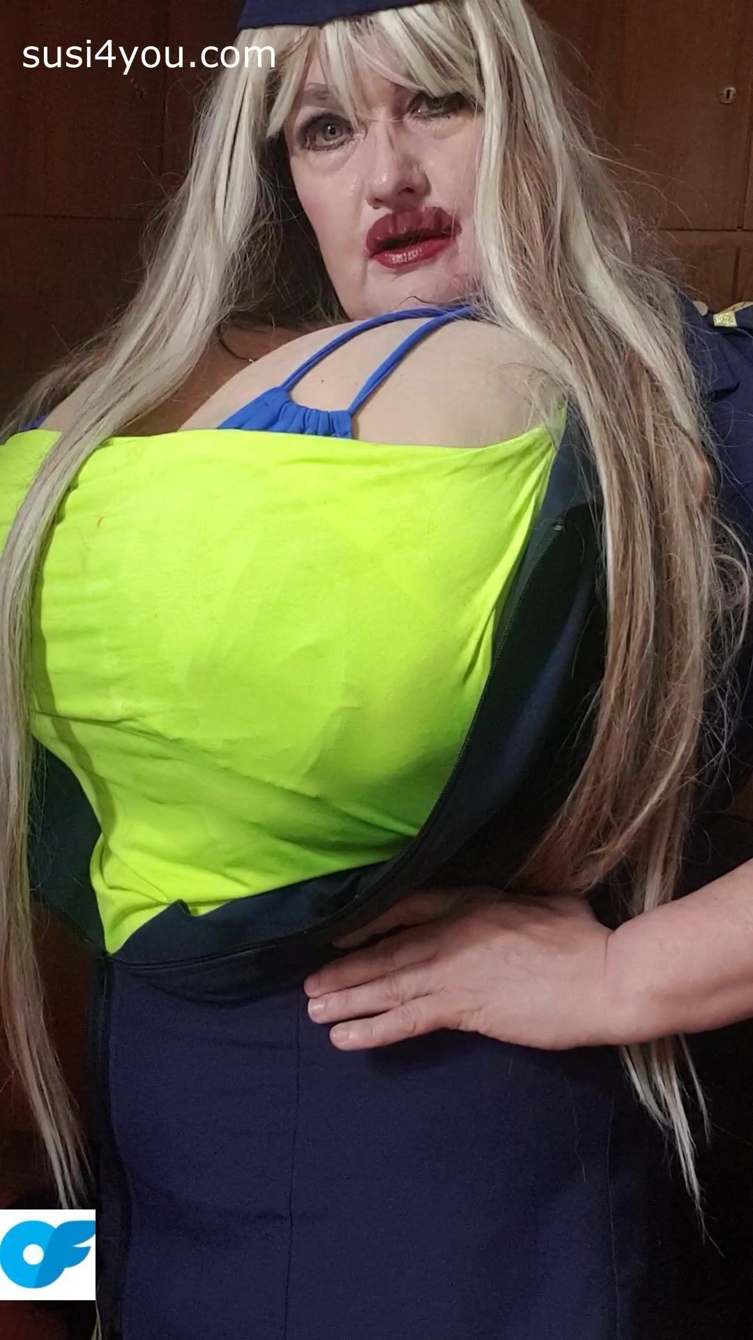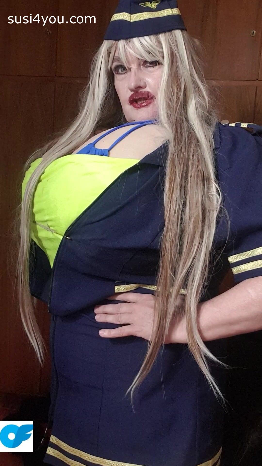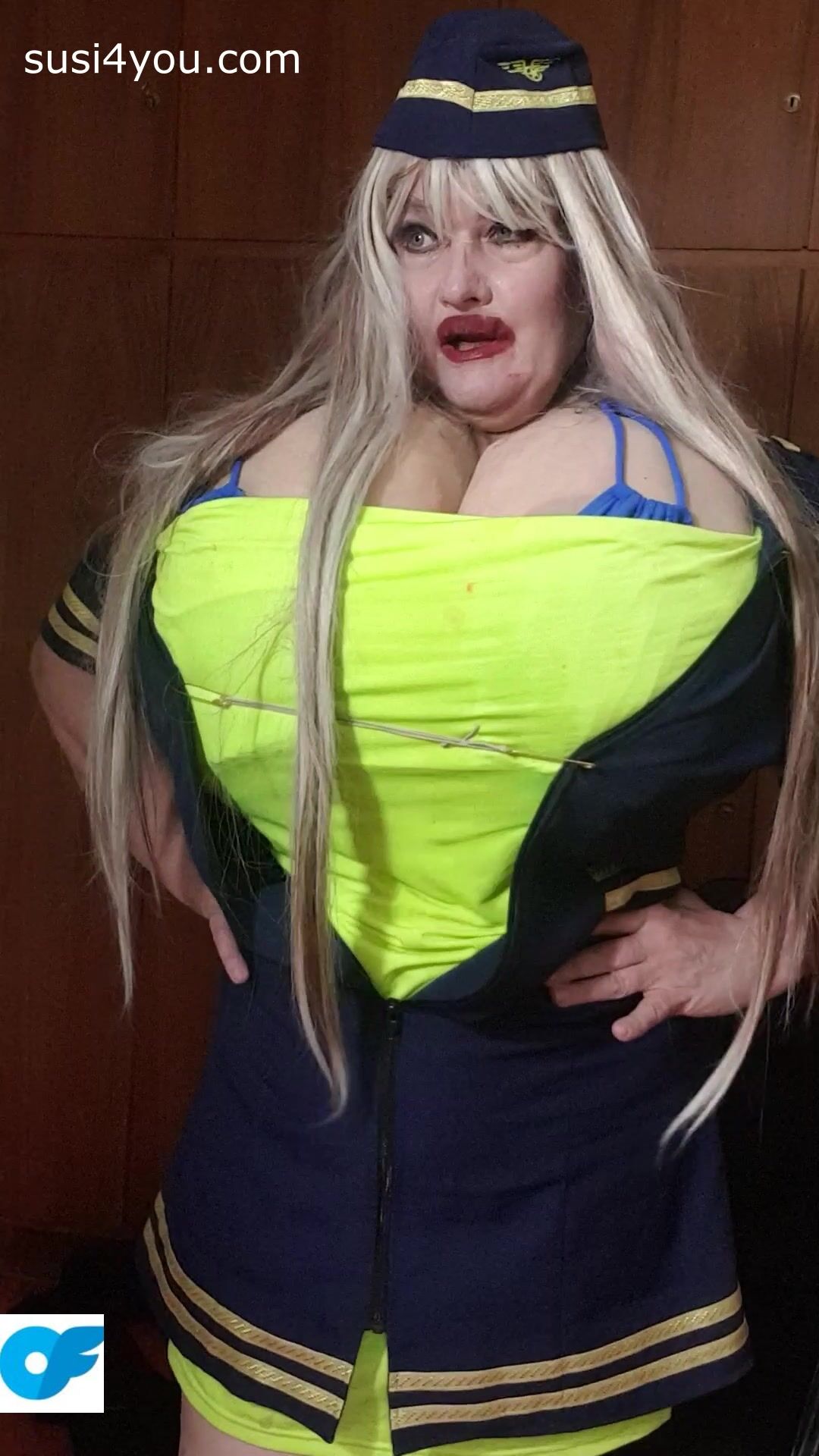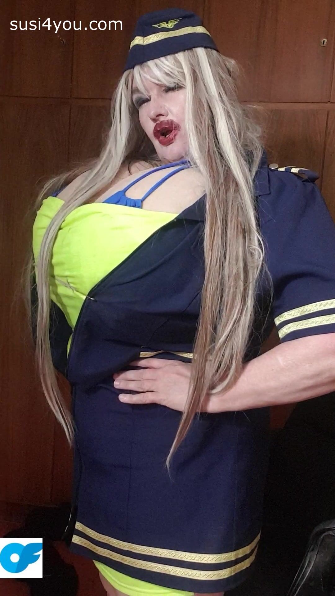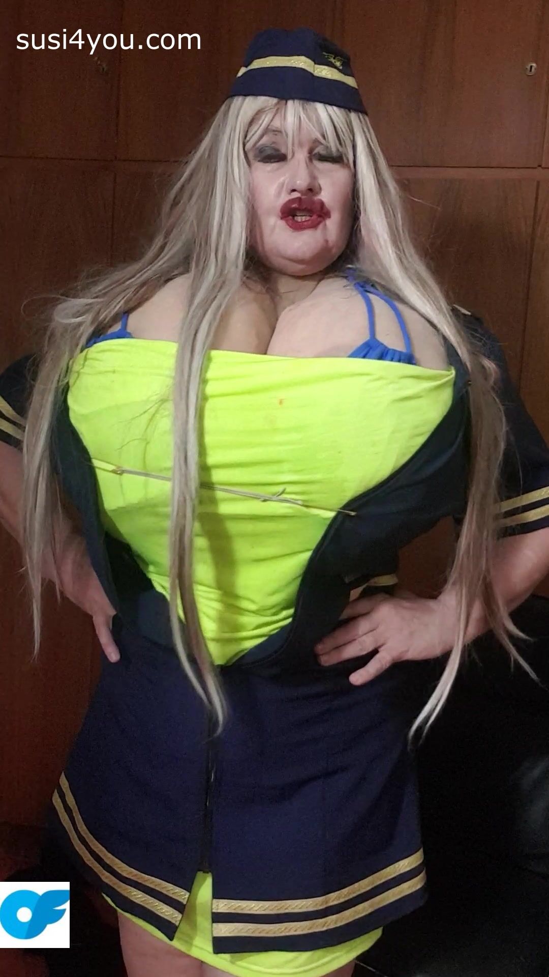 Watch susi in a sexy stewardess costumme. You will see her very big boobs. She is pulling out her big tits and teasing you with a sph you must come for her. You see her wonderfull big tits enjoy it and come