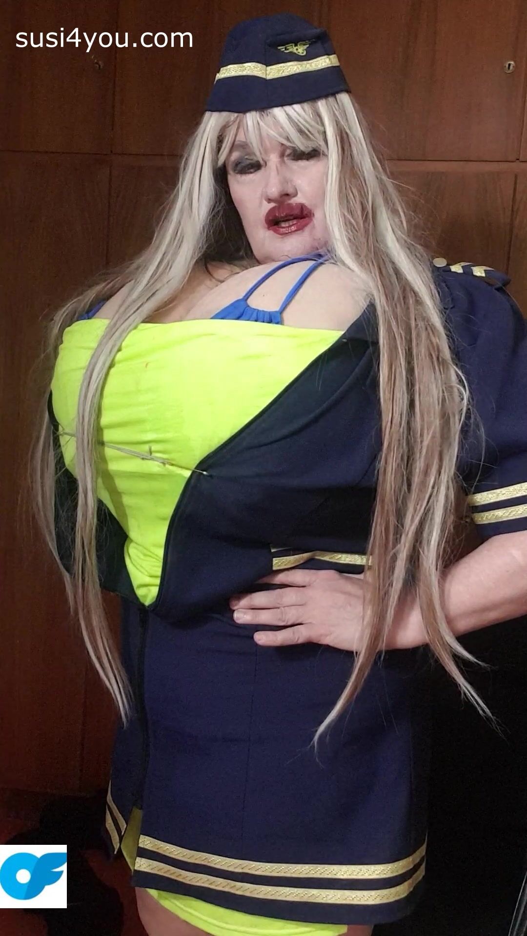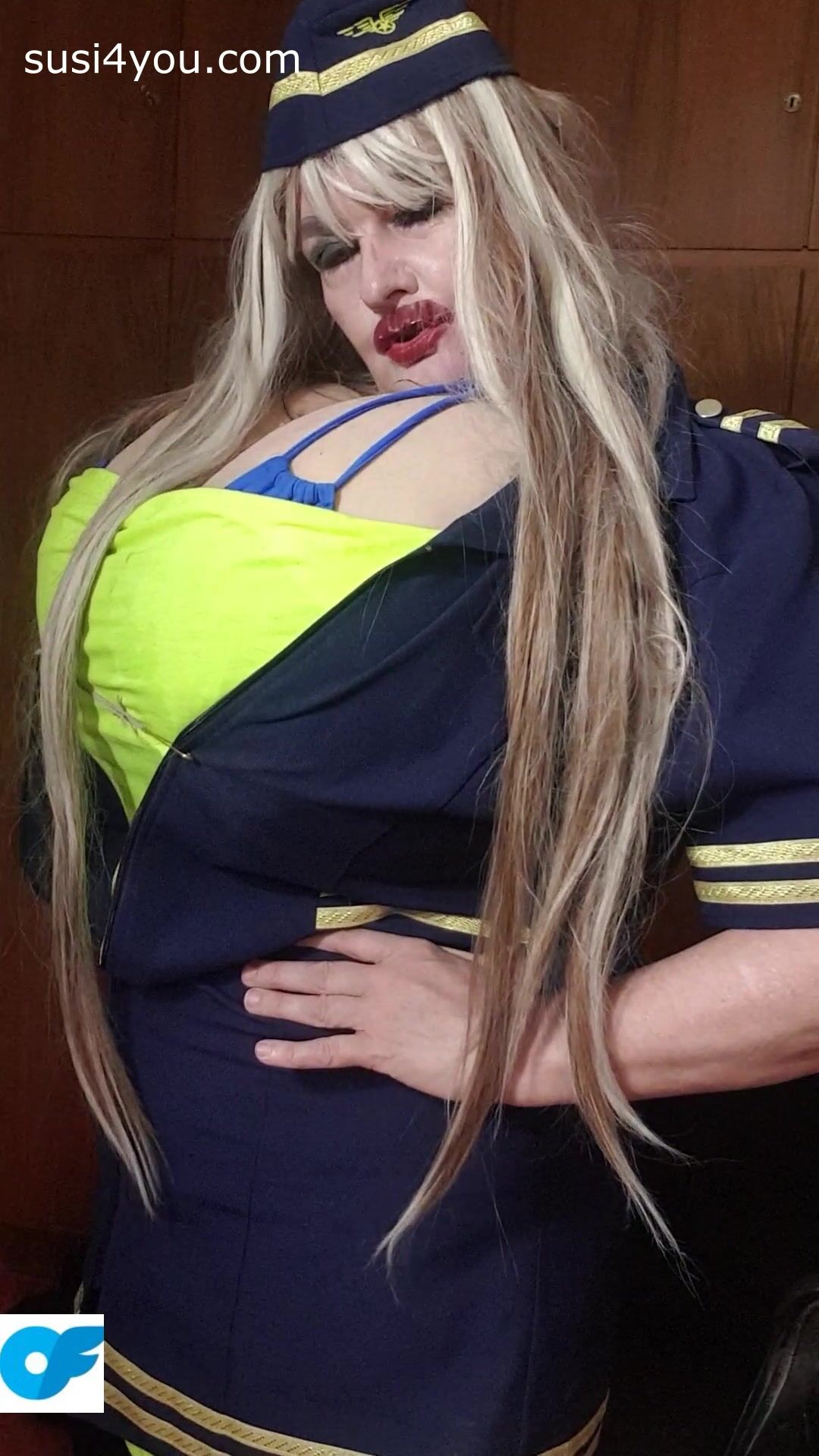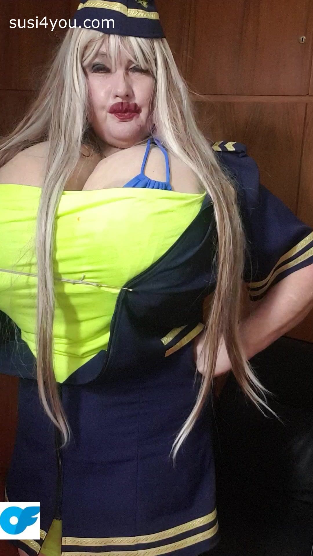 Watch susi in a sexy stewardess costumme. You will see her very big boobs. She is pulling out her big tits and teasing you with a sph you must come for her. You see her wonderfull big tits enjoy it and come