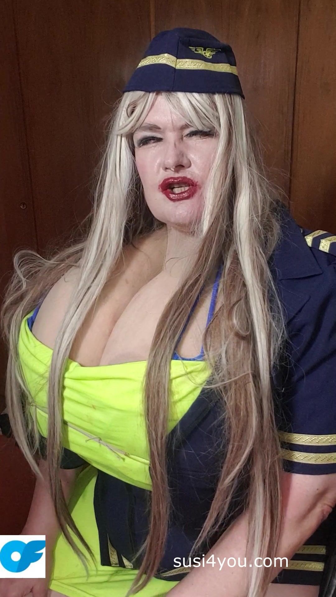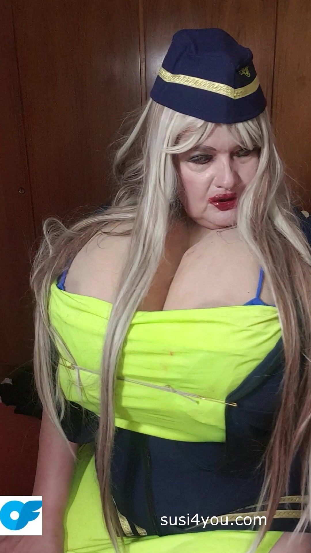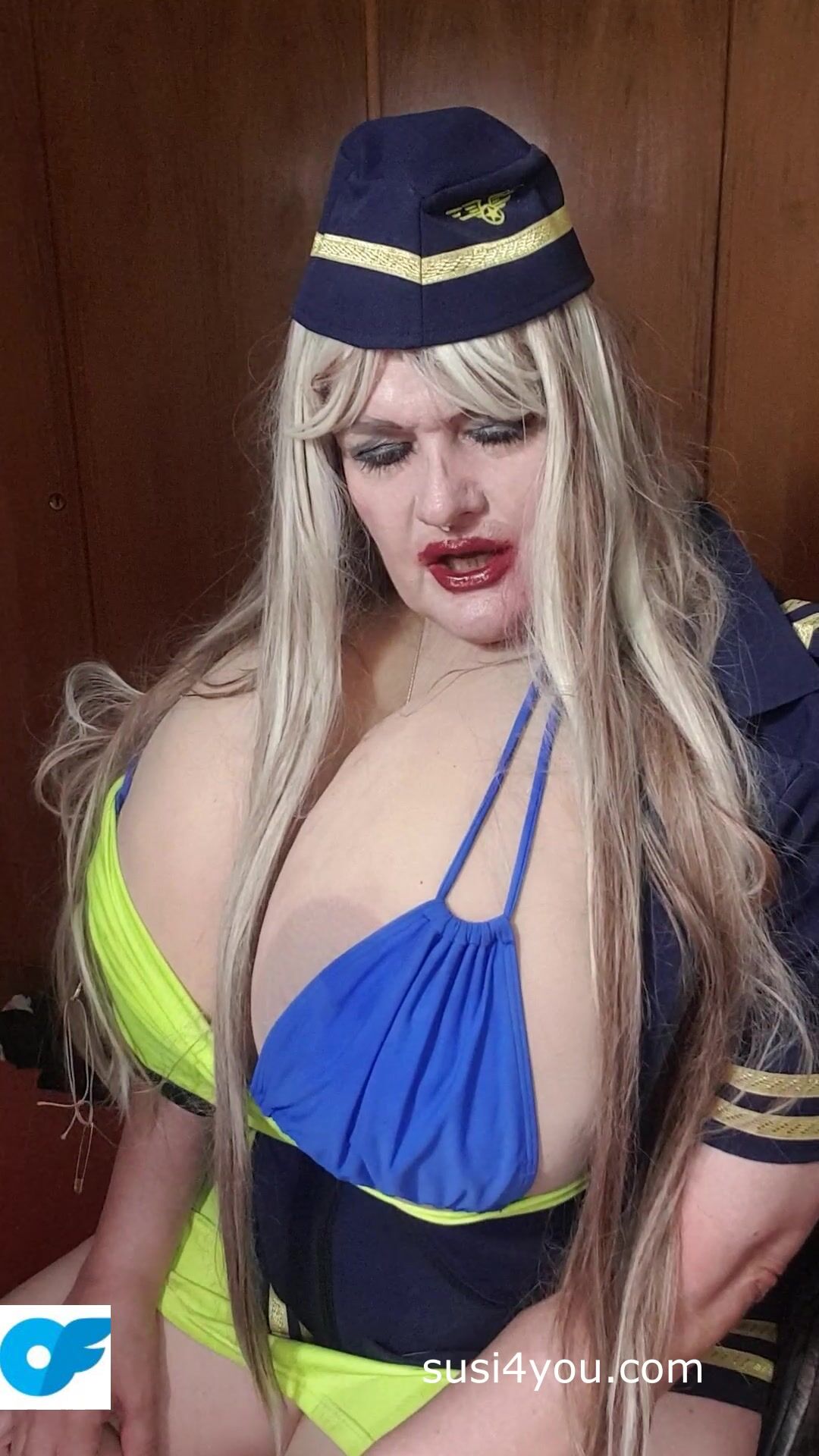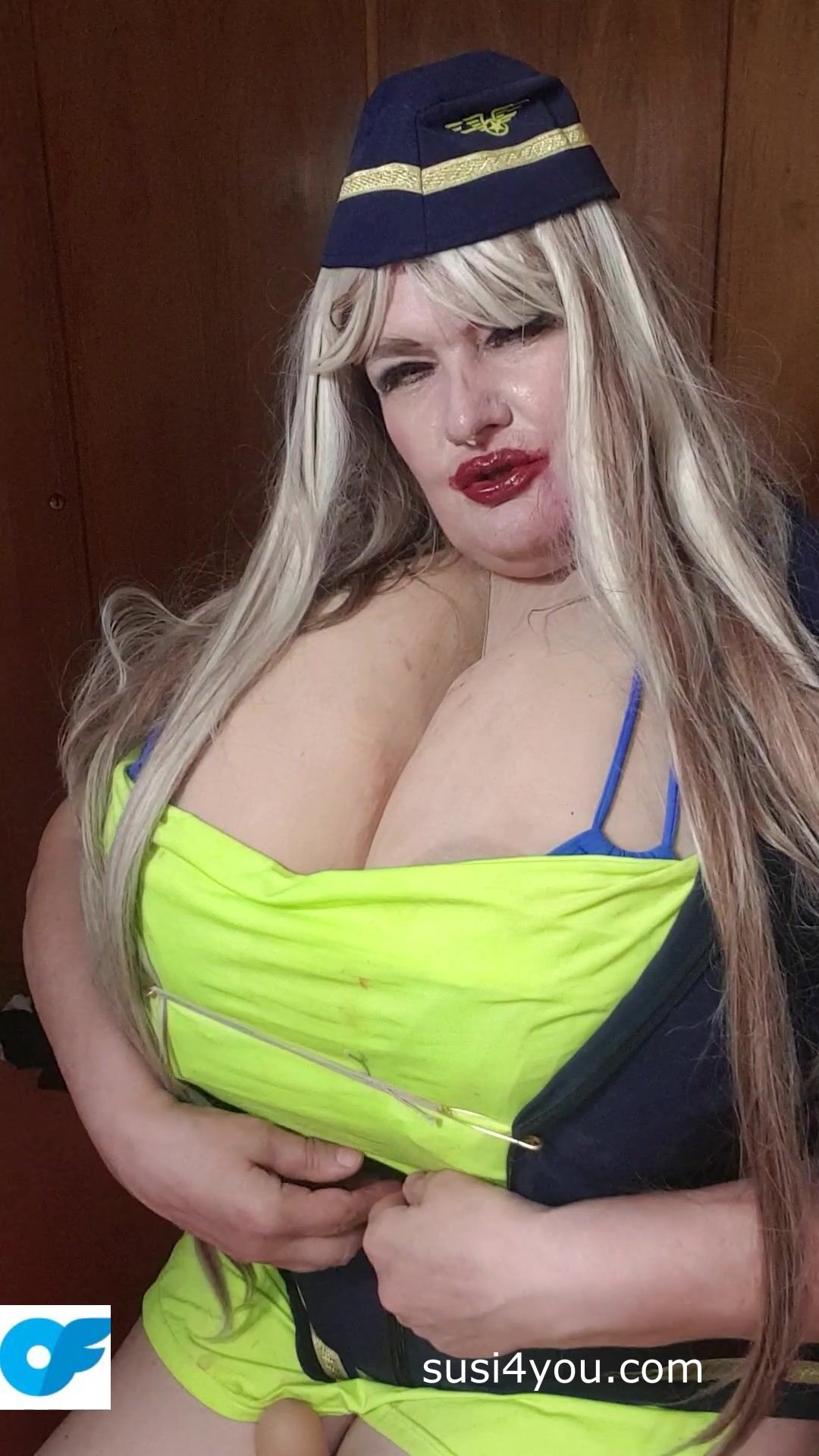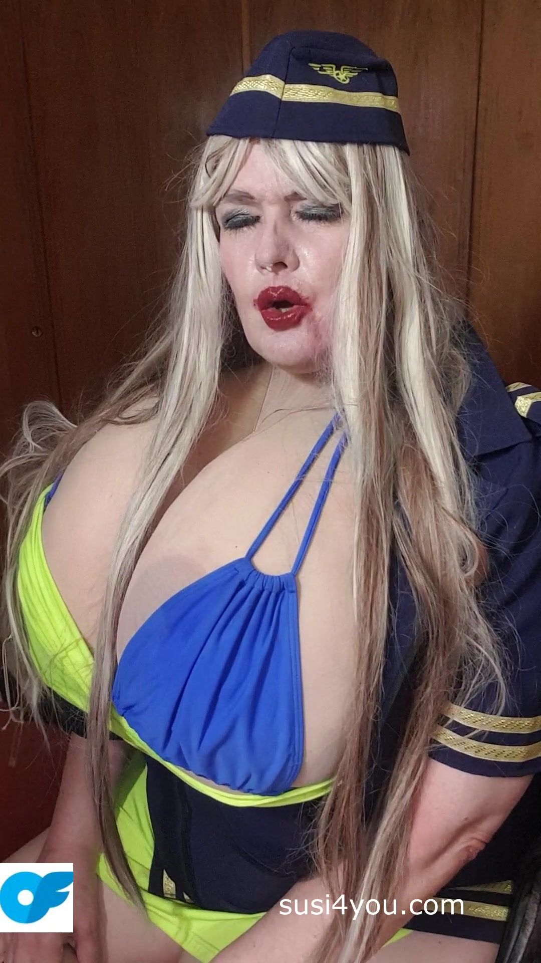 Sexy Susi as a stewaress with cup k tits giving blowjob to squirtingtoy Video