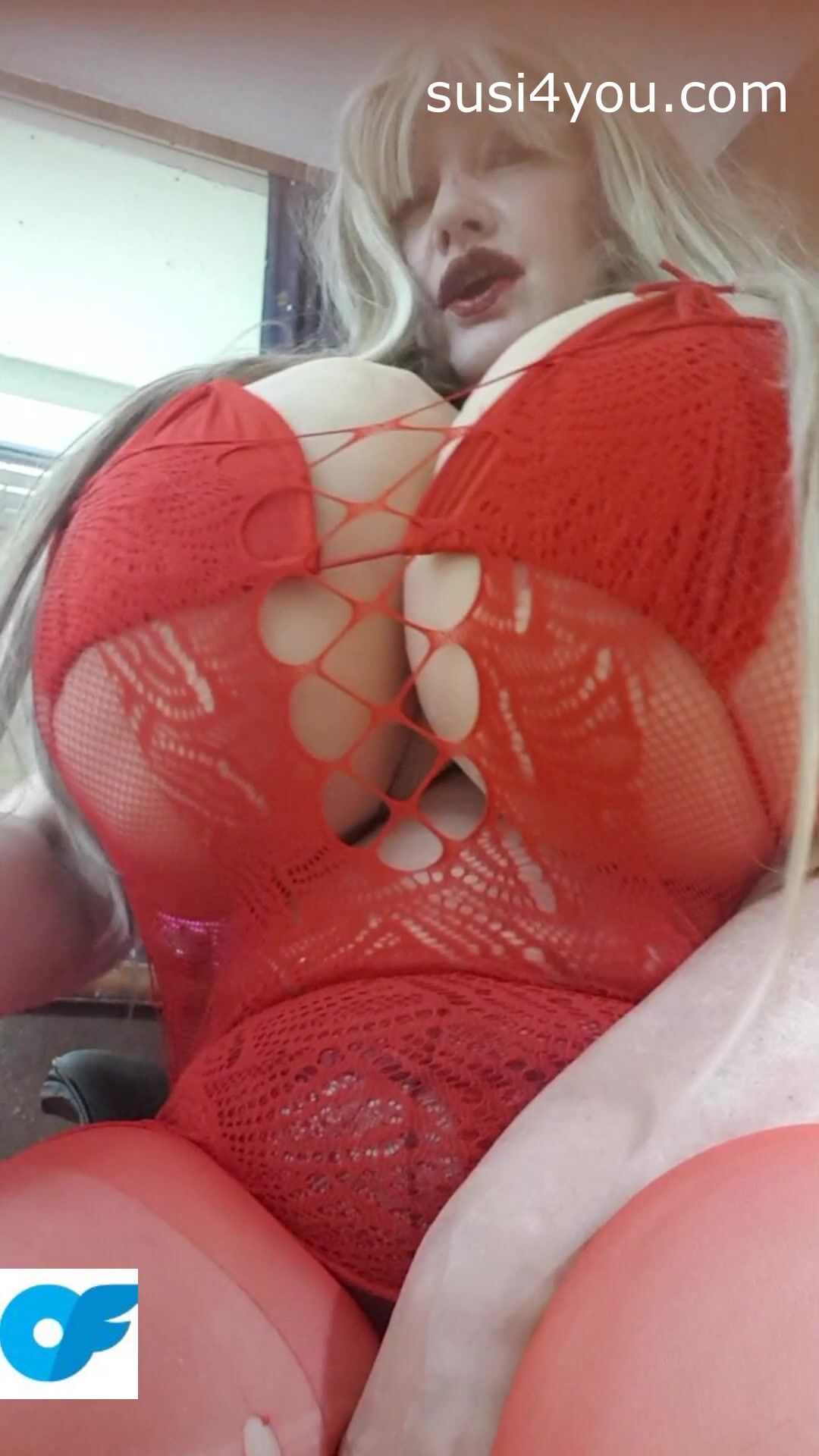 Have a look at nasty Susi showing pussy in red fishnet Video