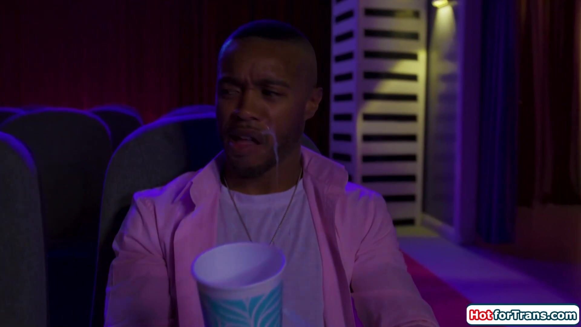 Busty tgirl Ariel Demure deepthroated and fucking in cinema Video