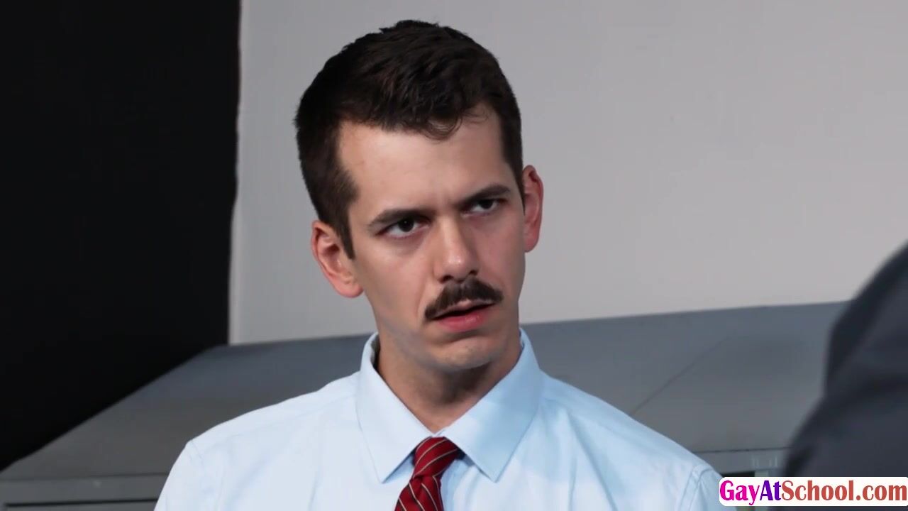 Description: Principal Jonah Wheeler is angry when he finds Nick wandering around the halls with only a towel.He brings Nick back to his coach Amone Bane to see what the deal is.The coach starts to spank him and let him deepthroat blowjobs their cock.They fuck him bareback anal.