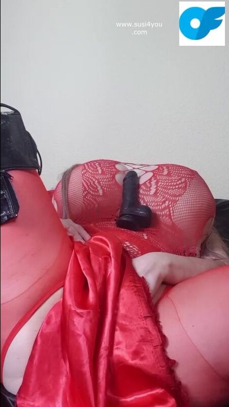 Sexy Susi is wearing red fishnet She is rubbing her pussy with bbc Video