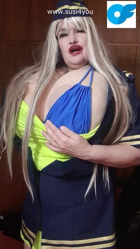 Sexy stewardess is teasing you with big tits out. Watch those huge cup k boobies Susi is pulling them out Enjoy this nice nasty jerk off instruction you cumslave you have to obey you are mine.