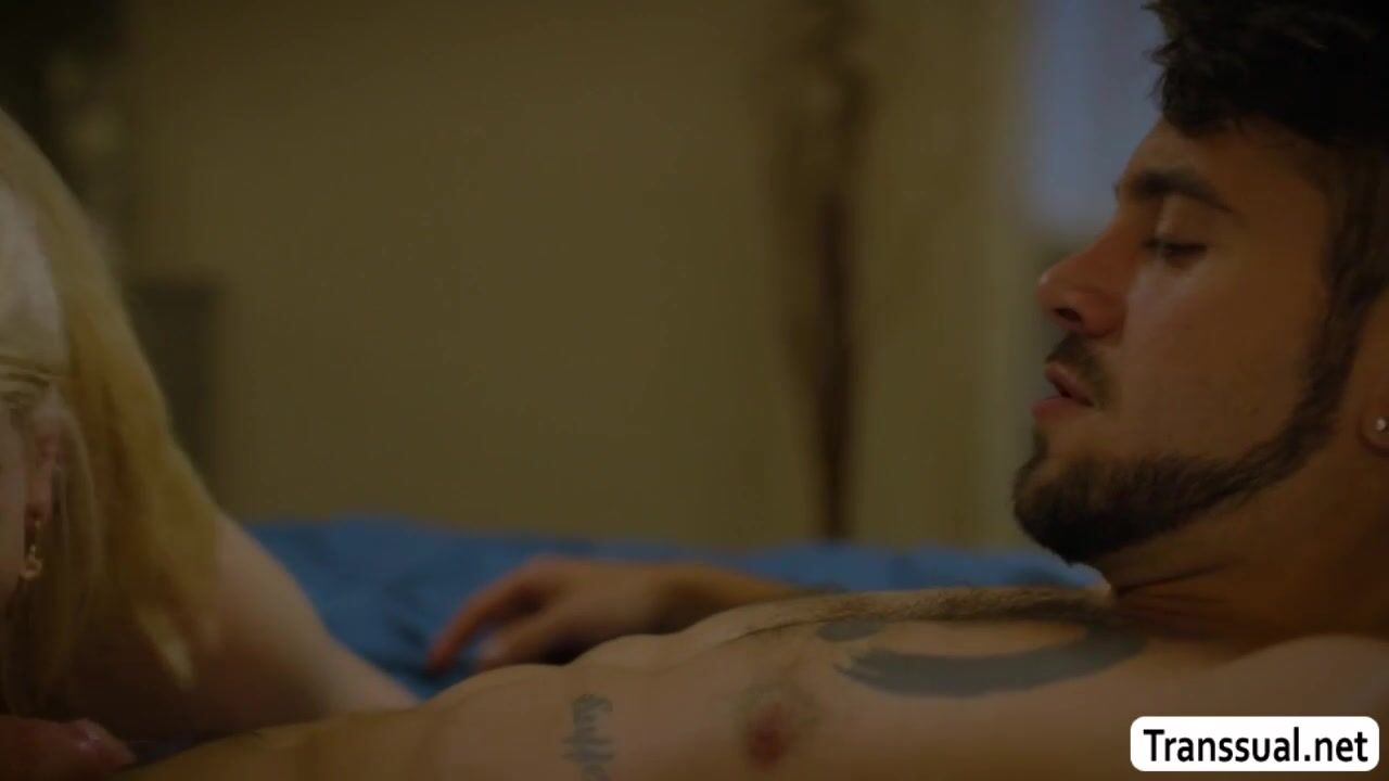 Carring Trans Woman lets her stepbro close the door and they start kissing each other on the bed.After that,she throats his hard big cock passionately and in return,her stepbrother bareback fucks her tight ass so deep and hard.