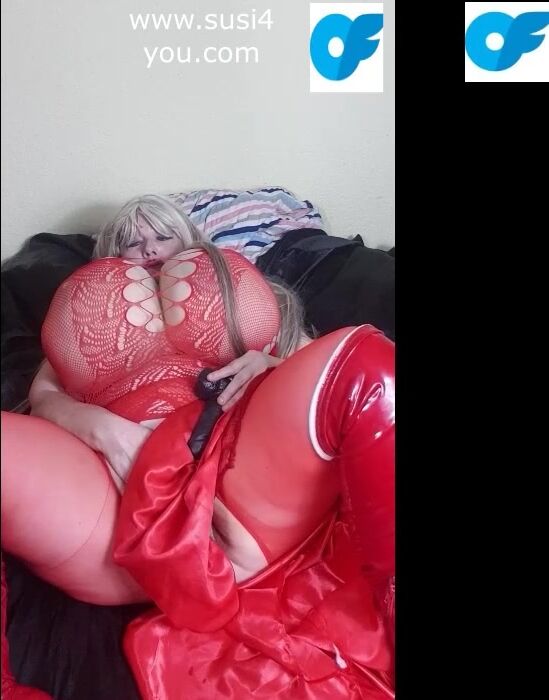 Susi is wearing a red fishnet suit fucking pussy with bbc toy Video
