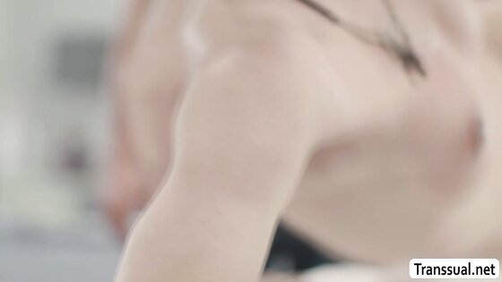 Horny shemale is naked and lays down on the massage table and lets the masseur massage her body.After that,she lets him suck her hard shecock passionately and in return,she throats his dick too and lets him fuck her wet ass so deep and hard.