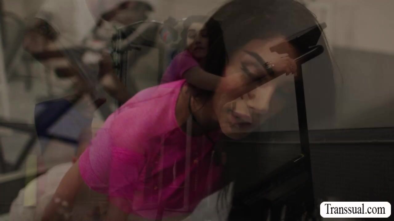 Horny dude licks and fucks the ass of super hot TS in gym Video