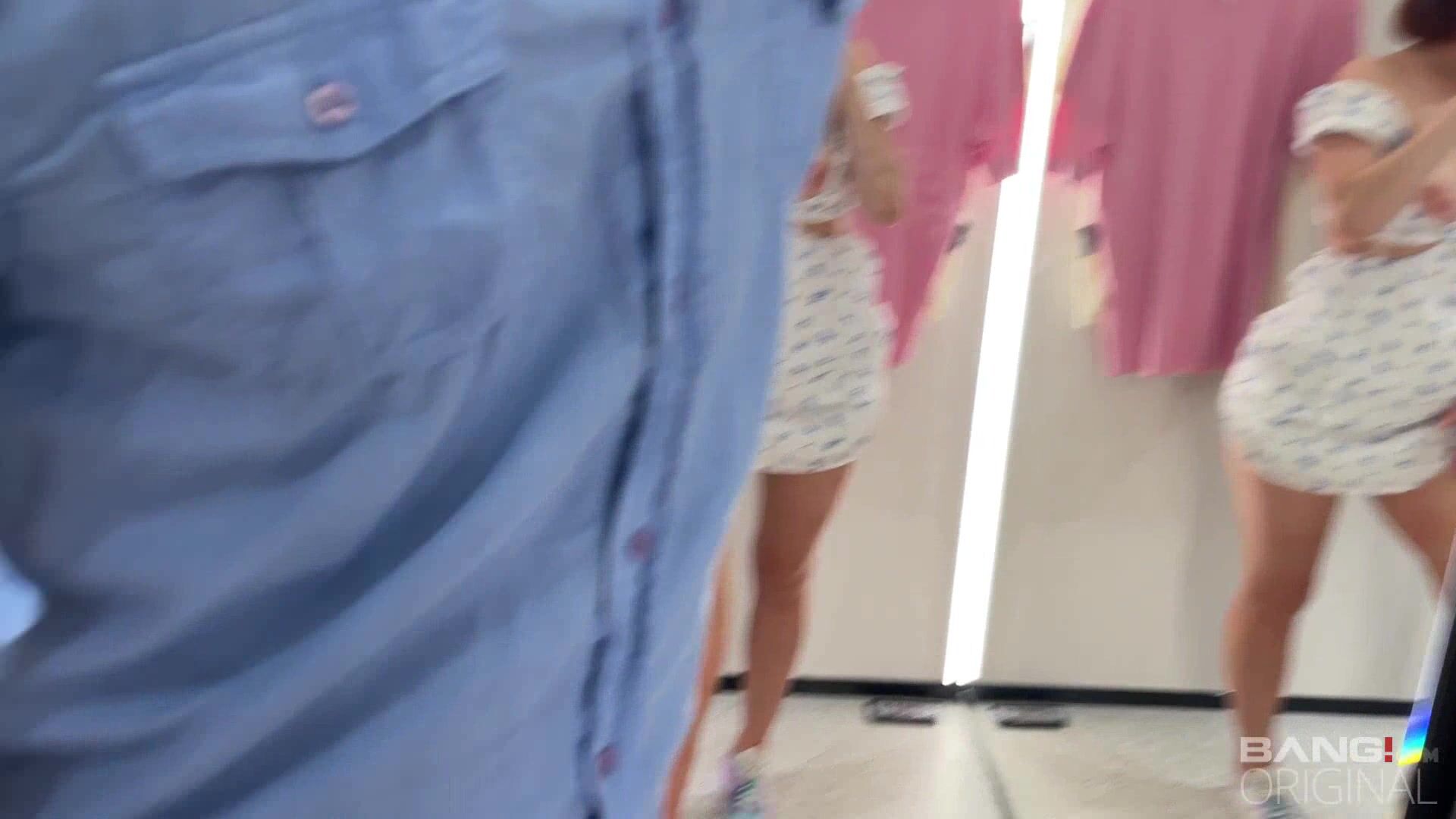 Description: Stranger fucks model in a mall fitting room with lots of mirrors