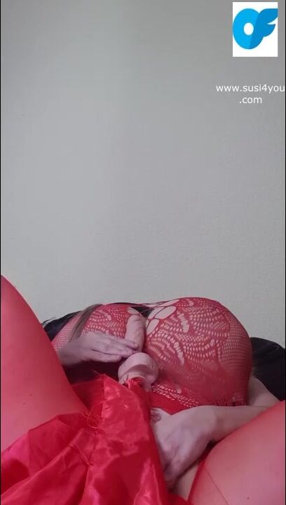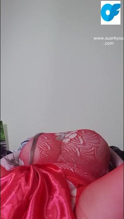 I am lying on my back Susi spreads her legs hear her moaning. Playing with toy in red fishnet pulling out fat tis showing them moaning lets cum together you like my red boots i have put them on just for you.