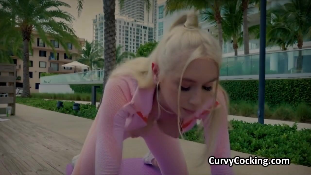 Kay is enjoying her time on the sun while stretching but her tits are out. No wonder that the first dude tried to pick her up.. successfully.
