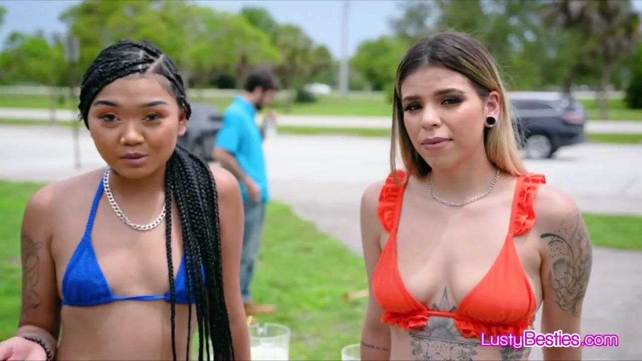 Interracial bikini besties sharing dick in foursome Video