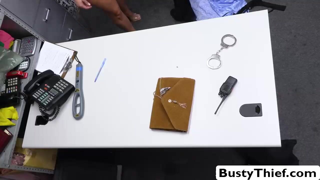 A beautiful unemployed busty blonde tattooed milf Alexis Malone is caught by the police officer stealing an earrings that she trades her pussy to avoid complications. The big tits babe deepthroat blowjobs his big cock and gets her pussy fucked hardcore.