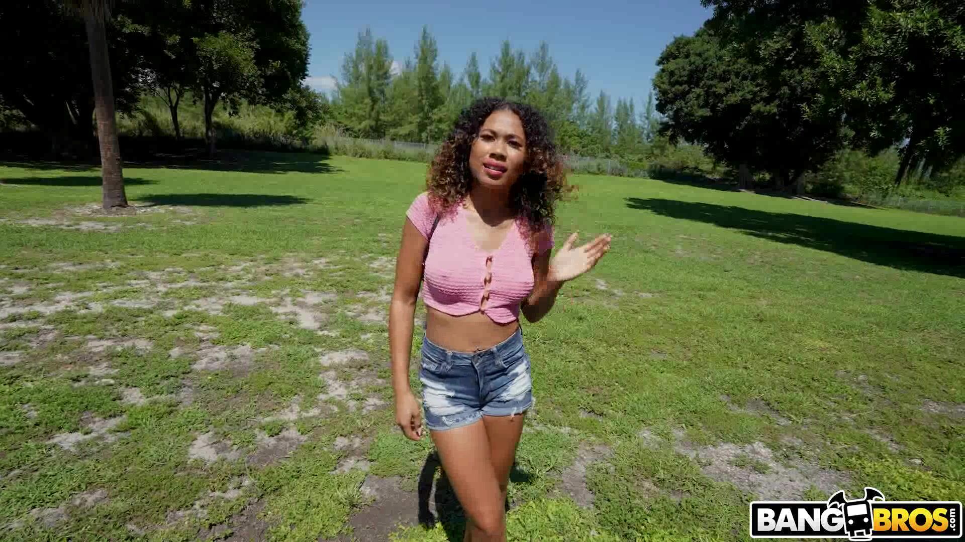 Black girl flashes her tits for the money Video