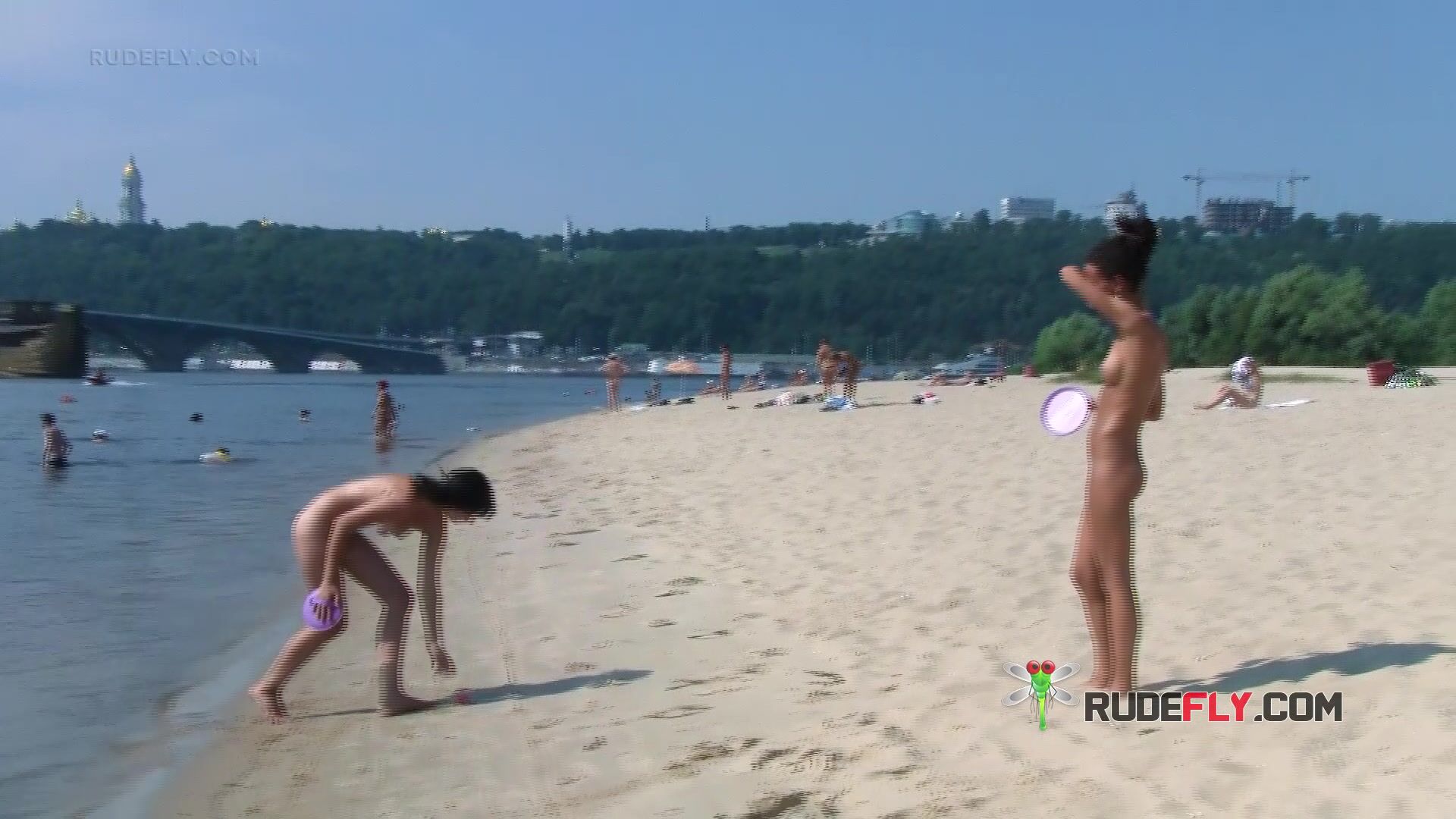 Bombastic young nudist babes sunbathe nude at the beach Video
