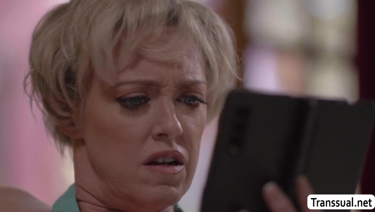 Description: Busty MILF is on the couch masturbating her pussy while watching porn.After that,her TS neighbor fucks her pie and instead of getting mad,she throats her hard tranny cock passionately.In return,TS shemale neighbor fucks her wet pussy so hard.