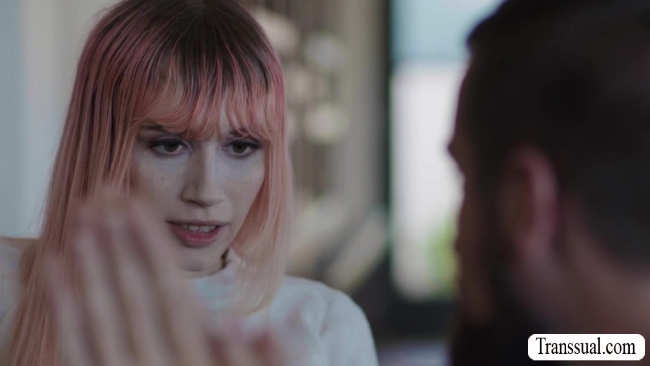 Pink haired TS is on the couch taking a nap and her stepdad awakes her.After that,they start kissing each other and she then throats the big cock of her stepdad.In return,her stepdad licks her tight ass first and he then fucks it so deep and hard.