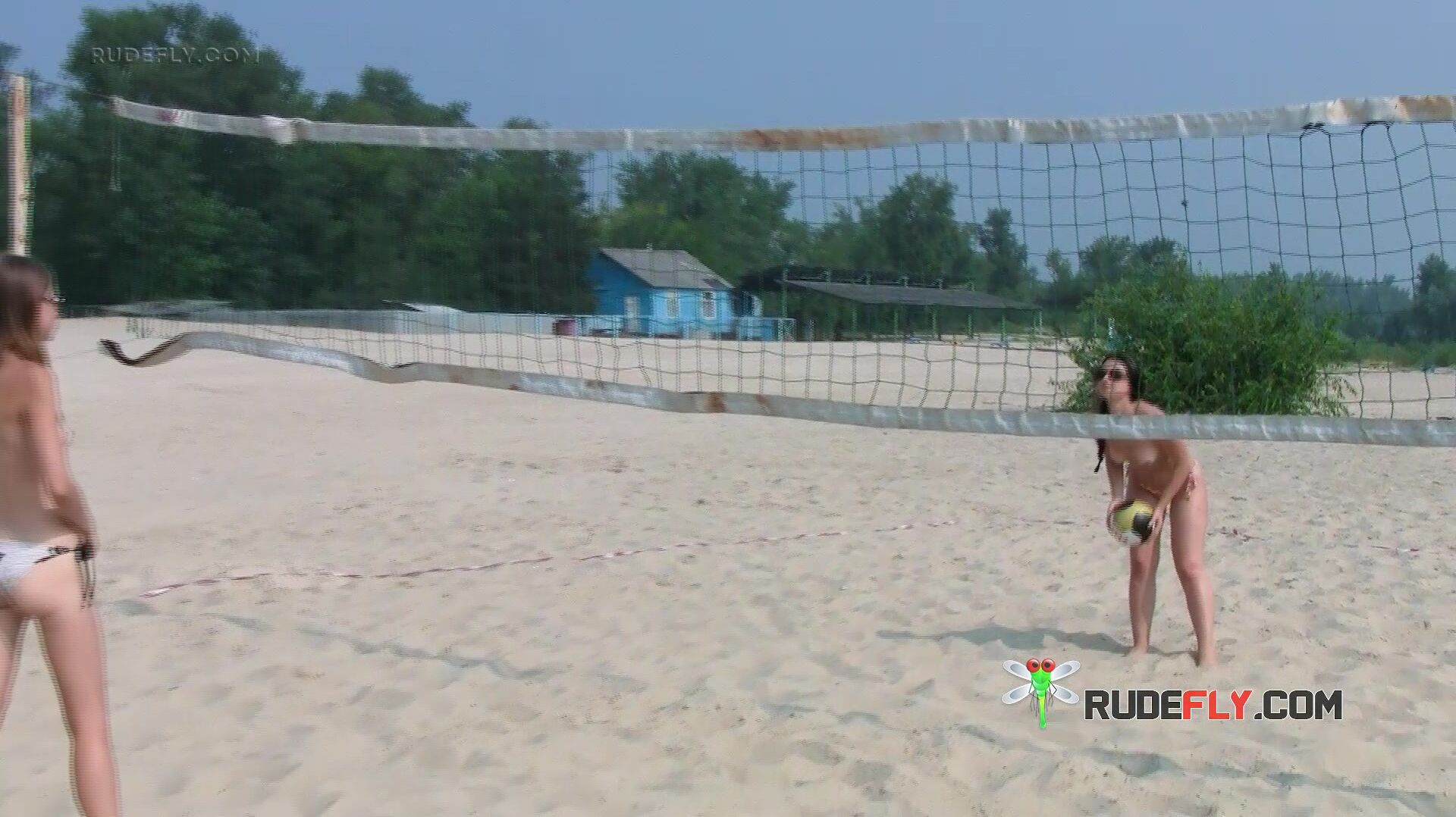 Dashing young nudist chicks have fun at the beach Video