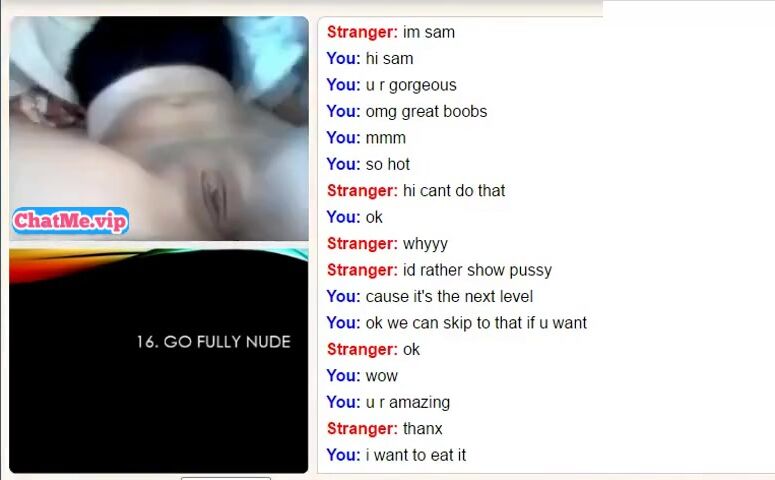 Curly teen with great body and horny wet pussy masturbating on adult 1 on 1 video chat.