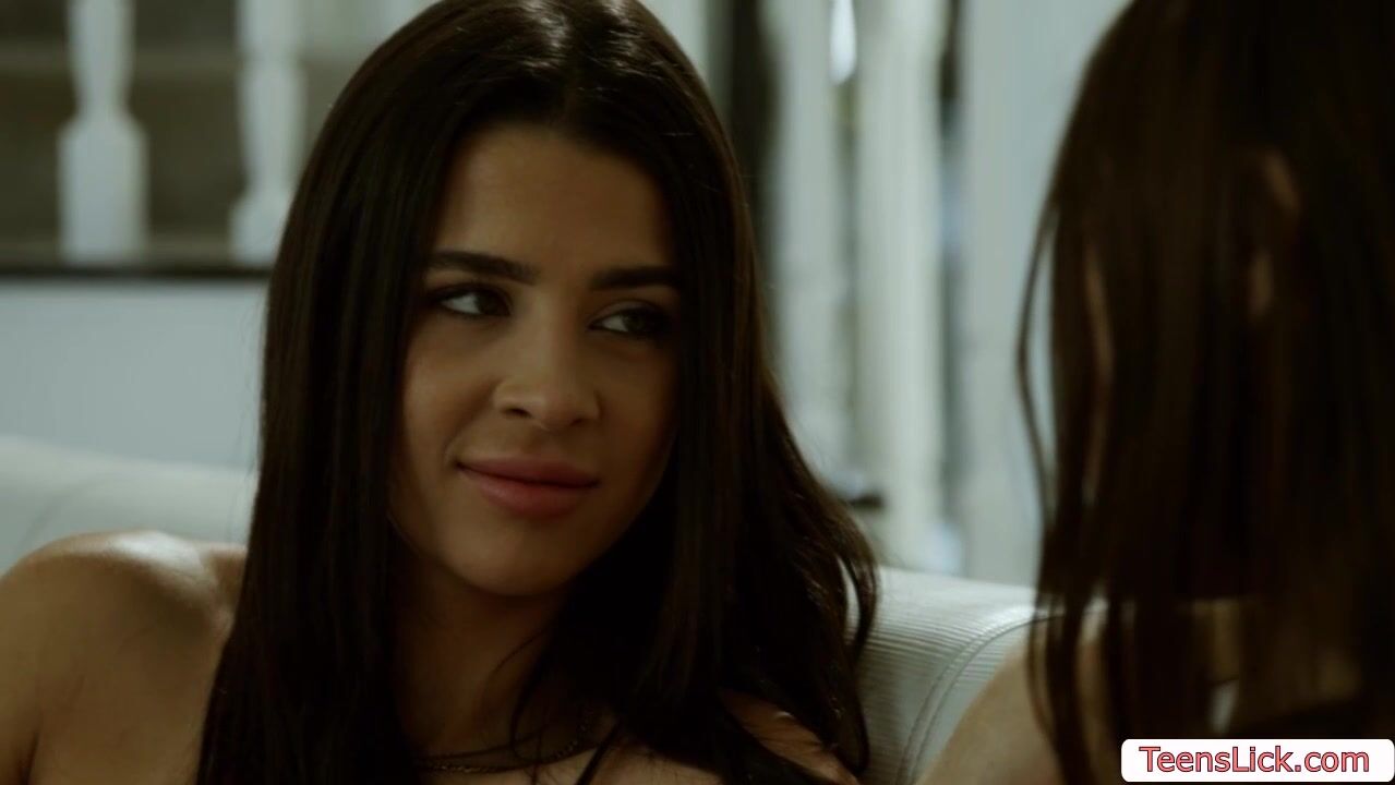 Brunette teen and her friend are on the couch kissing each other in passionate way.After that,they suck their nipples to makes it hard and next is they get totally naked and then lick each others wet pussy on the couch.