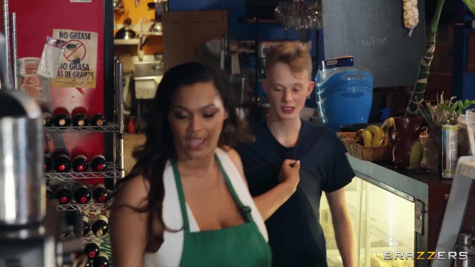 Busty milf Mandy Rhea fucks security officers bigcock on desk