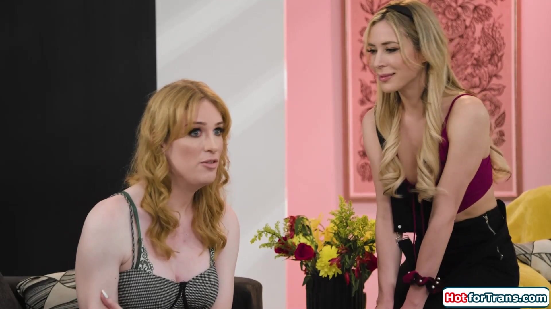 Description: Busty redhead ts Erica Cherry confesses her feelings for her bff Aiden Ashley and the blonde kisses the tgirl.The big tits shemale gets her big tranny cock deepthroat and licks the small boobs babes shaved pussy.Aiden rides on the trans dick