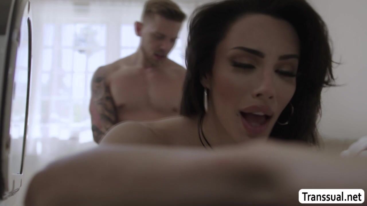 Description: Shirtless Shemale is in the laundry room to wash her clothes.After that,her boss saw her and he rips off her jeans and start fucking her big ass so hard.Instead of getting mad,she throats his dick first and lets him fuck her ass again.