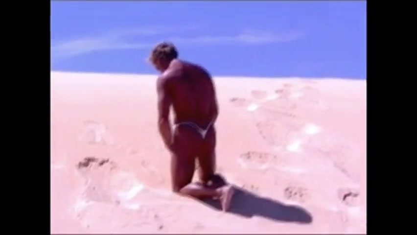Tanned guy on beach in tiny string thong (temporarily!) Video