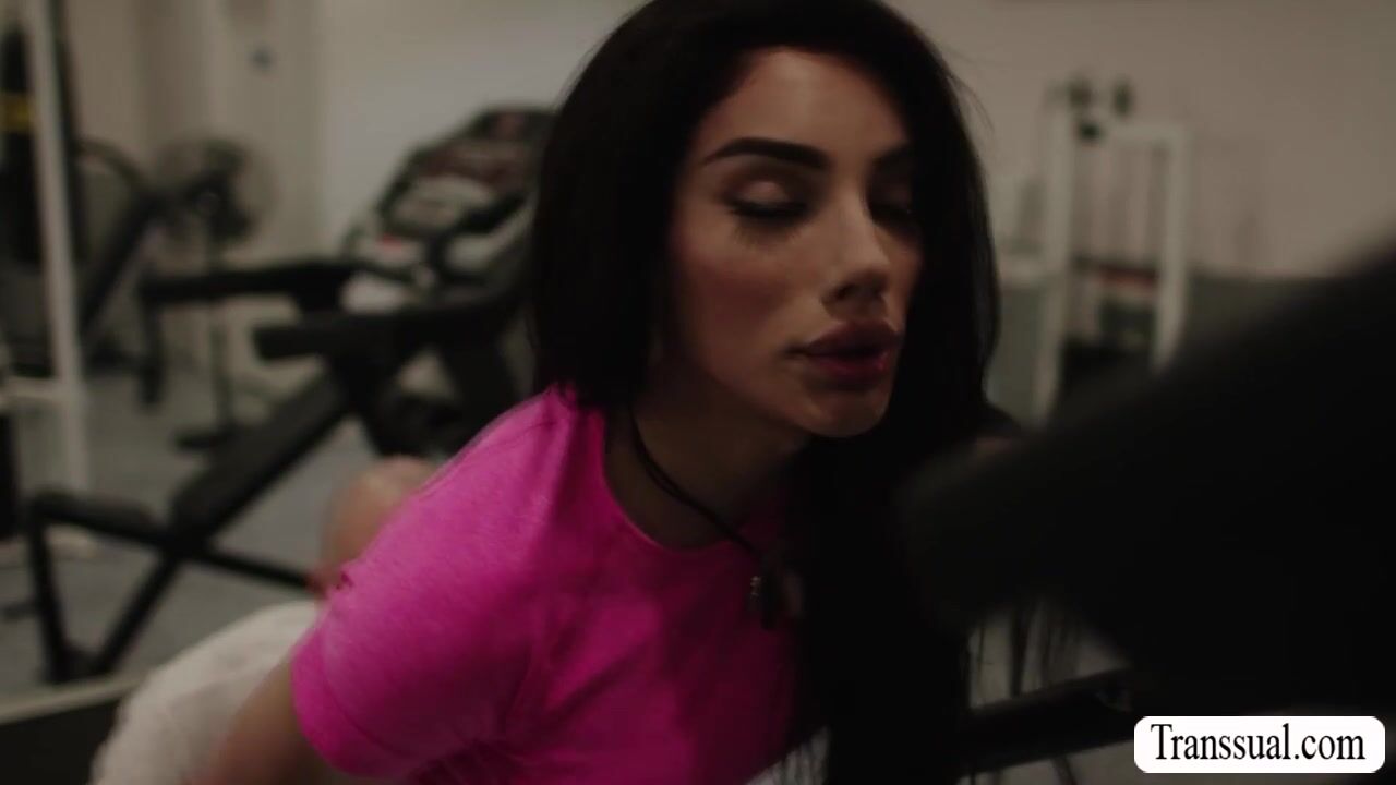 Description: Horny guy cant stop looking at his Shemale gym buddys big ass.He goes to her and he rips off her leggings and start licking her ass.After that,she pulls out his big cock and lets her suck it before he starts fucking her ass.