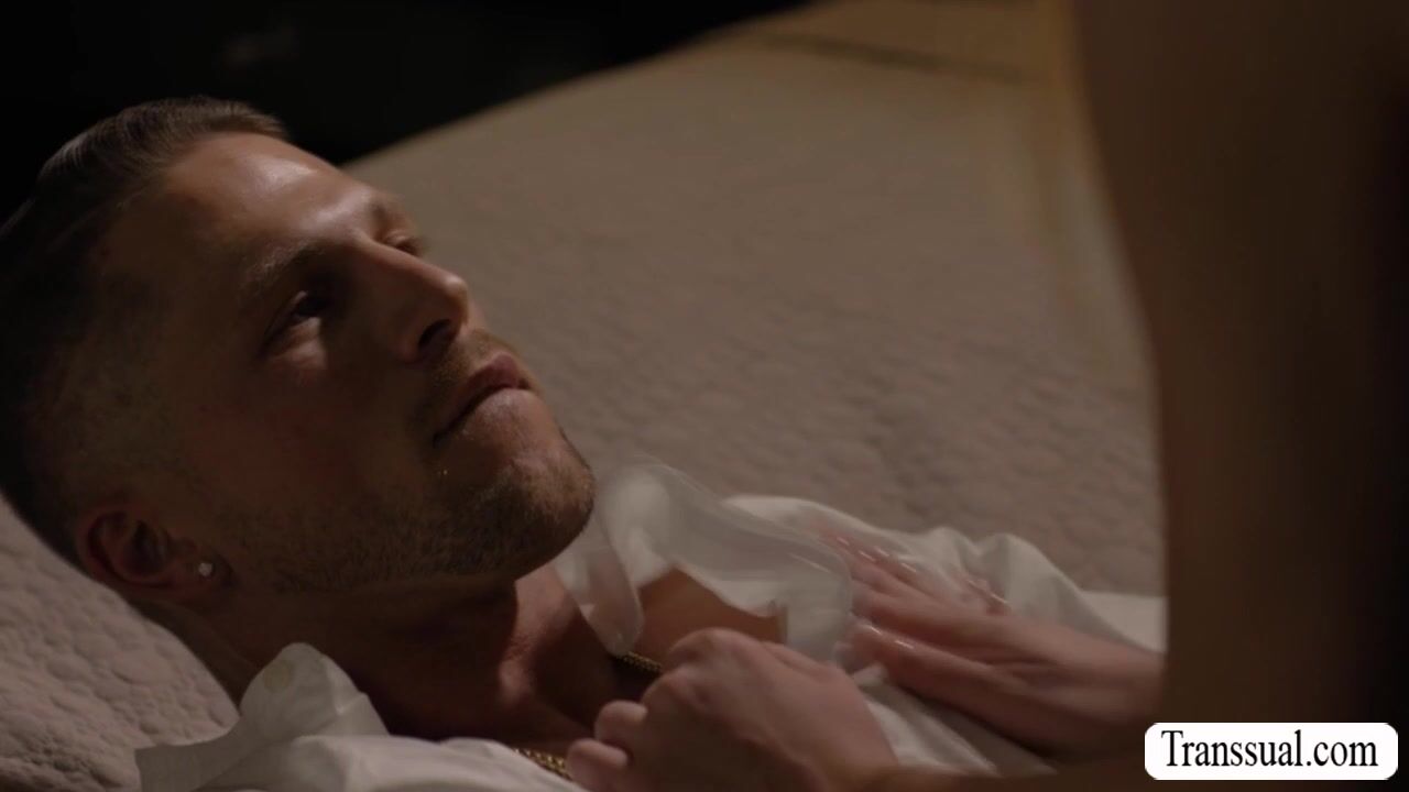Gorgeous Shemale wears a seductive dress in their valentines date with her boyfriend.They start kissing each other on the bed and after that,she throats her boyfriends big cock passionately.In return,her boyfriend licks her ass before he fucks it.