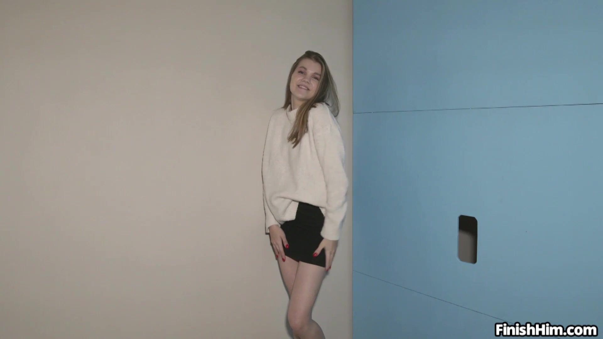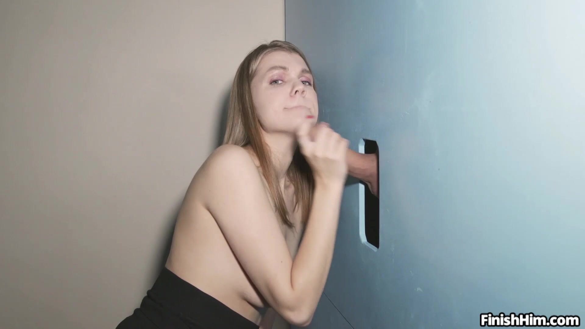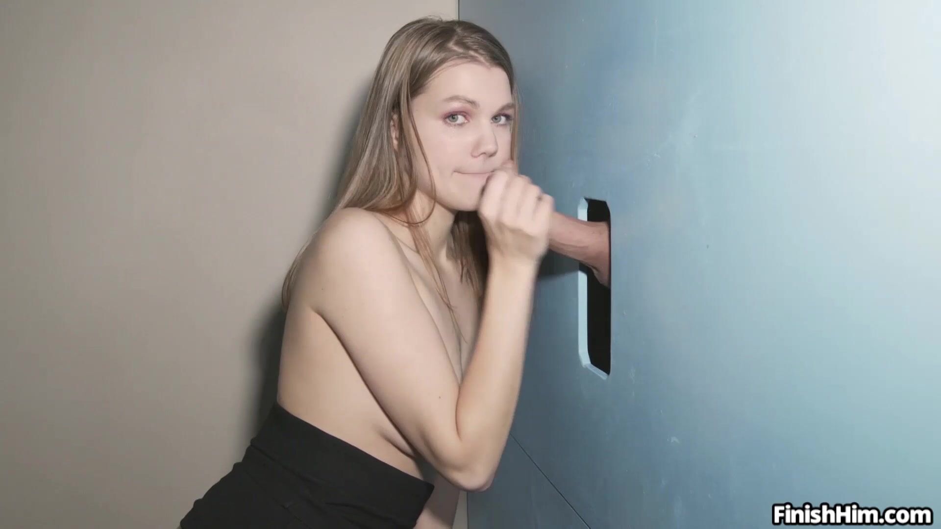 Euro teen Amanda Clarke sucks on a big dick at the glory hole. She gives great blowjobs and makes him cum through the hole in the wall.