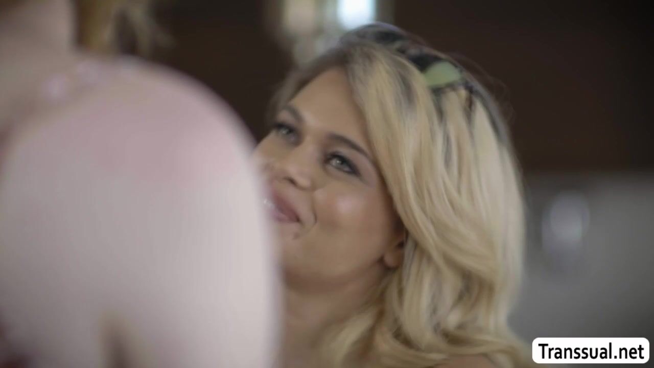 Tall TS redhead Erica Cherry and blonde babe Destiny Cruz are on the couch kissing each other passionately.After that,Destiny throats Tgirl Ericas hard shecock and in return,she gets her pussy so wet and fucked so hard.