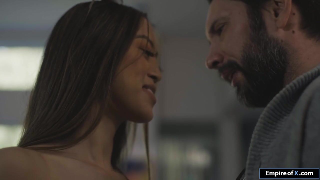 Petite brunette walks naked in her neighbors backyard.The guy gives her clothes but she wants to have fun.He kisses and sucks on her small tits while masturbating her clit.The asian babe blowjobs him before letting him fuck her shaved pussy.
