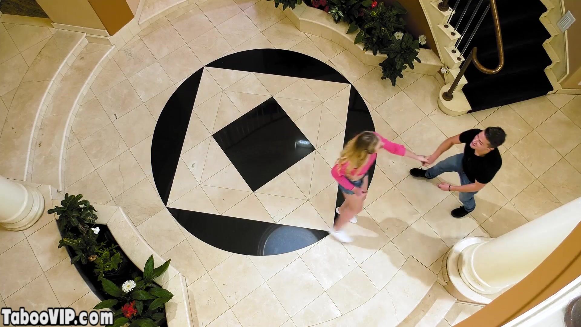 Description: Petite blonde teen with small tits is giving a blowjob to her BF then he is fucking her hard MILF stepmom hearing her stepdaughter moaning on a big dick so she is spying on them during masturbating