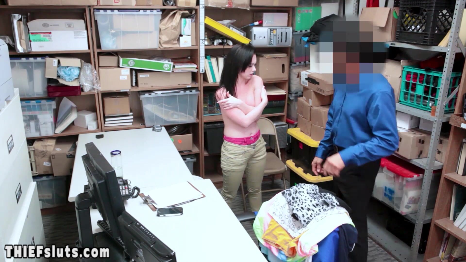 Suspicious brunette teen thief Athena Rayne with big natural tits strip searched and interrogated by a horny LP officer who offered a deal She had to suck his big dick and let him to fuck her shaved pussy exchange her freedom