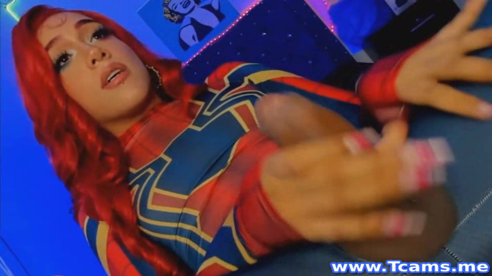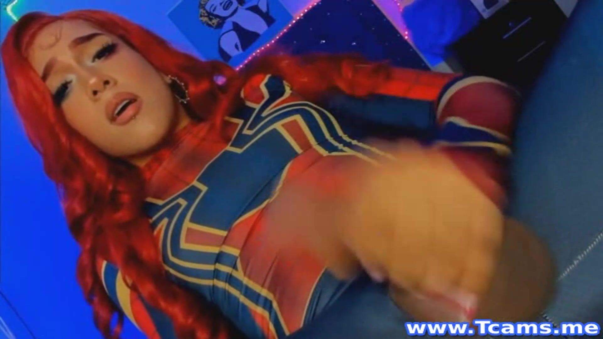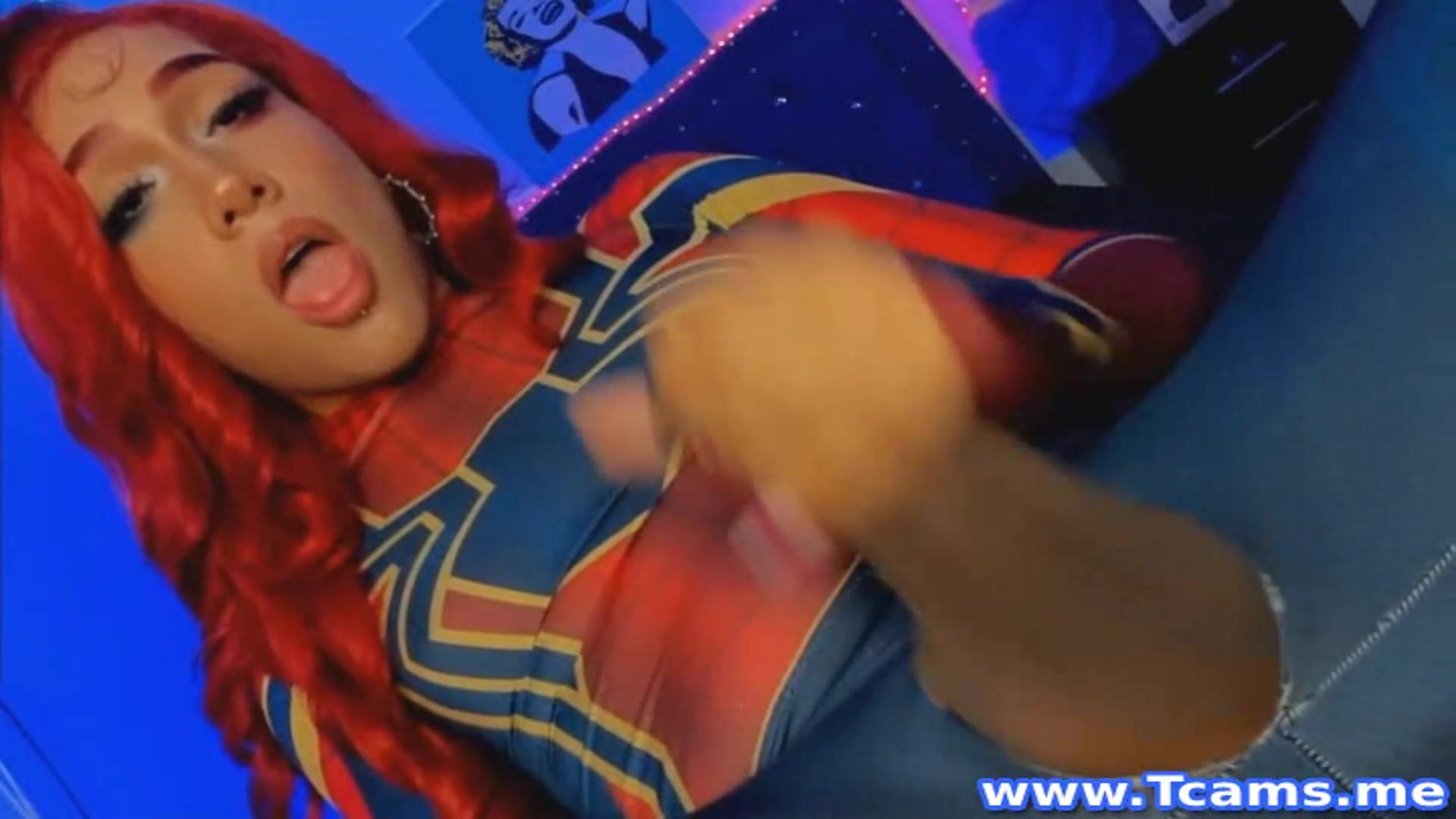 Cute and naughty and she seems love to fuck so must see this hot teen shemale in costume jerking solo. Red head shemale masturbates in a very hard way and you will be surprise with it. Catch her tied up her own cock and balls with a rubber band that looks big and hard erected up. You must not missed to see this hardcore masturbation because its really surprising in every minute of this show. It was a fucking hot masturbation show form this hot teen shemale in costume because she got a juicy and tasty cock.