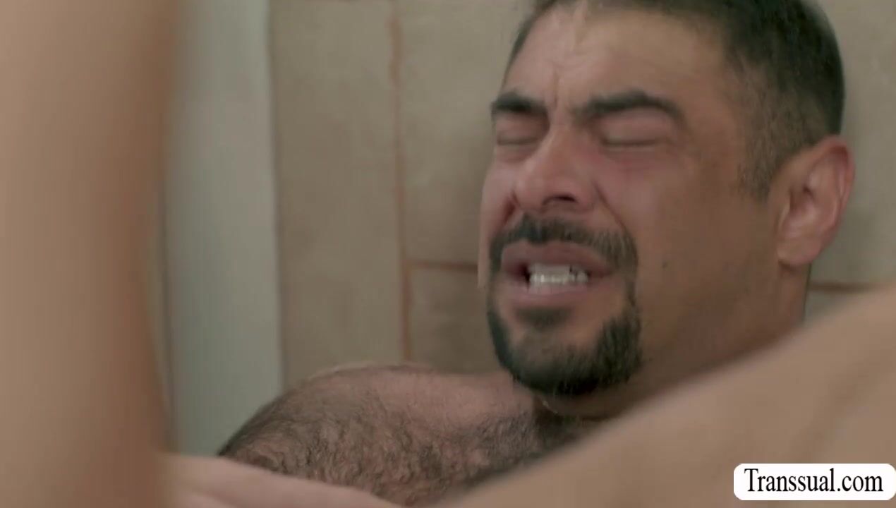 Fat dude gets caught by his TS stepsister Tori Easton peaking while shes jerking off her shecock in the bathroom.Instead of getting mad,she grabs him and lets him throat her hard shecock passionately.In return,she licks and fucks his ass so hard.