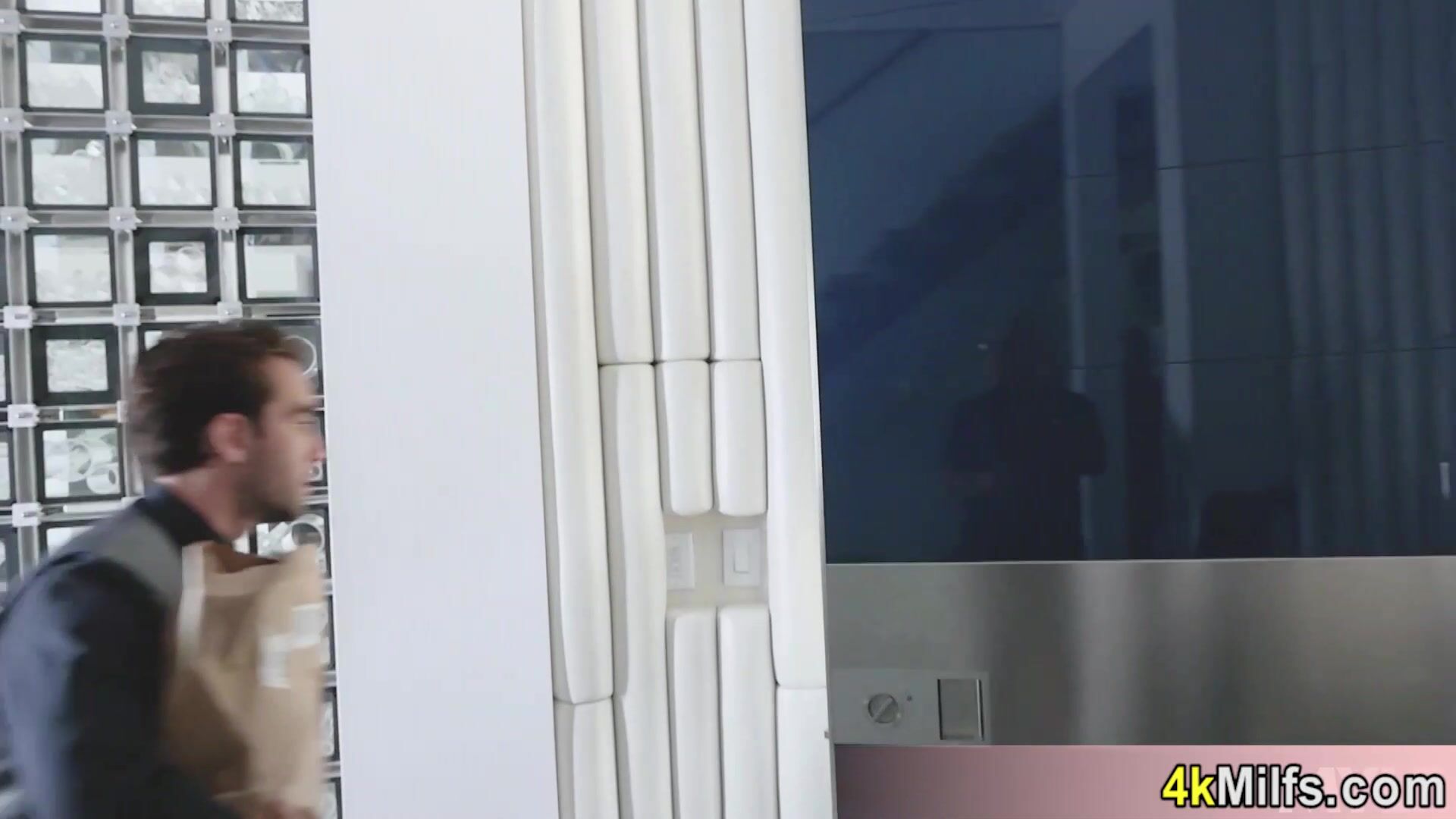 Skinny brunette MILF housewife Silvia Saige with big boobs needs a big cock so the neglected slut ordering her husbands employee to satisfy her shaved pussy Firts she gives him a sloppy blowjob then he is fucking her roughly