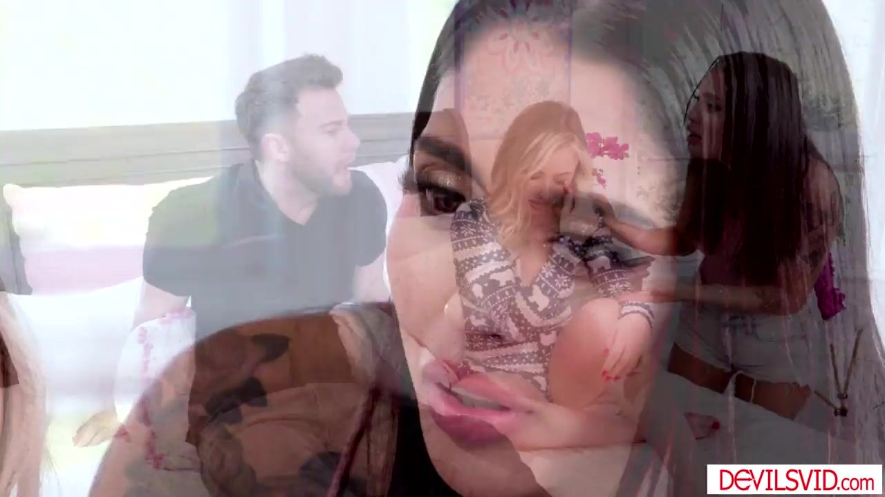Description: Guy comforts her girlfriends best friend who had a break up.He asks her to suck his cock to move on.The brunette babe is down for it and blowjobs him.The latina gf joins in and deepthroats her man.He fucks his babe first before going for her bff.