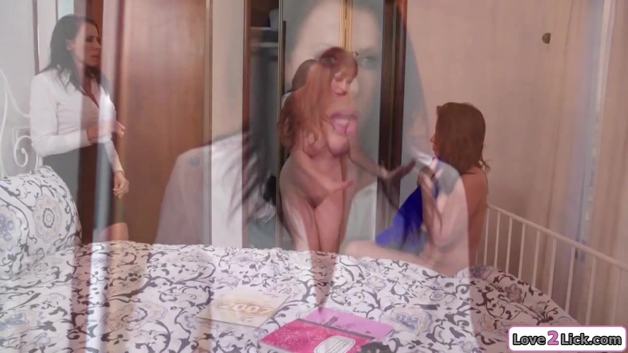 Redhead milf seduces a latina girl and kisses her.The older woman sucks her big tits and licks her hairy pussy.Her busty stepmom catches them fucking and joins them in threesome.The mature brunette kisses her stepdaughter and the babe facesits her
